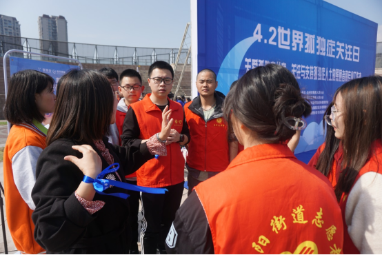 活动开始,达州市残联党组成员、副理事长唐琳彬致辞对为孤独症群体默默付出与坚守的人们表示衷心的感谢,希望全社会弘扬人道主义精神,友爱互助、融合交往,积极营造全社会关心、支持、帮助残疾人事业发展的良好环境。公司特殊教育专业师生聚焦“关爱孤独症儿童,关注与支持孤独症人士的照顾者和专业工作者”的活动主题,向在场的市民朋友宣传孤独症病因、主要症状、干预策略等相关知识,和孤独症孩子亲切互动,共同折叠、放飞蓝飞机,完成孤独症主题蓝画卷等,引导社会正确理解孤独症谱系障碍,包容与接纳孤独症人士。同时倡议广大群众当好示范者、当好维权者、当好志愿者、当好宣传员、当好主人翁,积极参与孤独症人士相关的志愿服务,树立平等、参与、共享的现代文明残疾人观,营造扶残助残的良好社会氛围,为促进“文明达州”积极贡献力量。