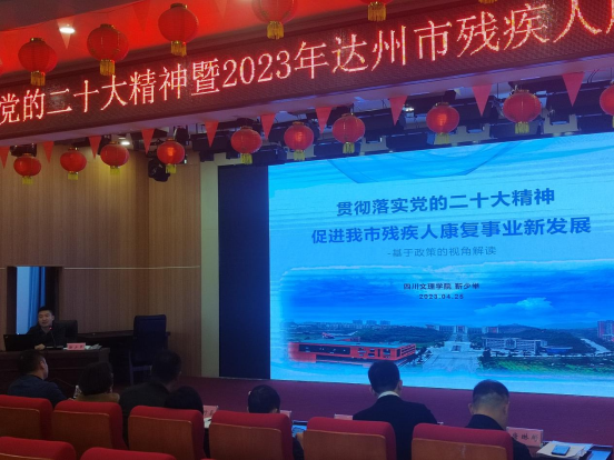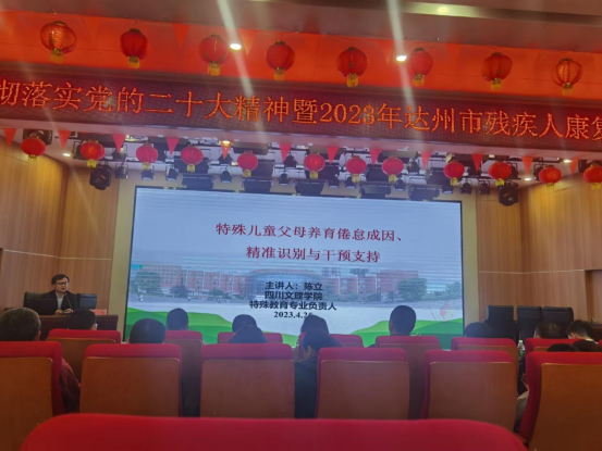 为推动达州市残疾预防和康复事业高质量发展,扎实落实“十四五”残疾预防和康复工作规划,进一步健全残疾人康复保障制度和关爱服务体系,大力开展残疾人康复提质增效行动,加强残疾人康复定点机构规范化管理,达州市残疾人联合会4月25日举办学习贯彻落实党的二十大精神暨2023年残疾人康复业务培训班,公司特殊教育专业教师靳少举和陈立受邀为培训班学员做题为《贯彻落实党的二十大精神,促进我市残疾人康复事业新发展》,《特殊儿童父母养育倦怠成因、精准识别与干预支持》的专题讲座。