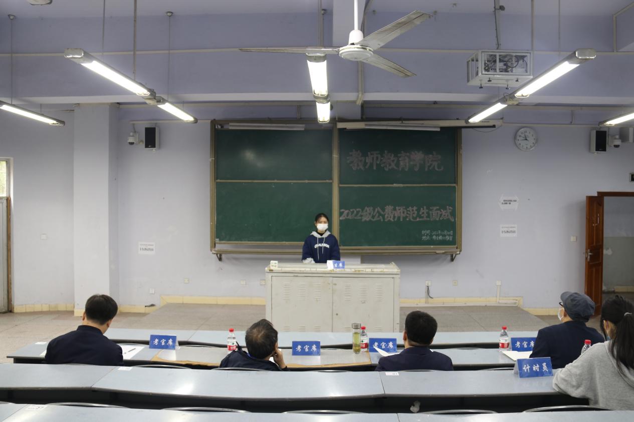 面试当天,首先由李思颖老师为考生讲解面试流程及注意事项。随后,考生分为三组有序进行签到、抽题、候考等工作。面试过程中,各组考生依次上台进行自我介绍,并认真分析抽取的题目,从容不迫地进行回答。他们准备充分,面对老师的提问沉着冷静,回答问题思路清晰。面试流程规范有序、过程平稳顺利,展现出了2022级公费师范生良好的专业素养。