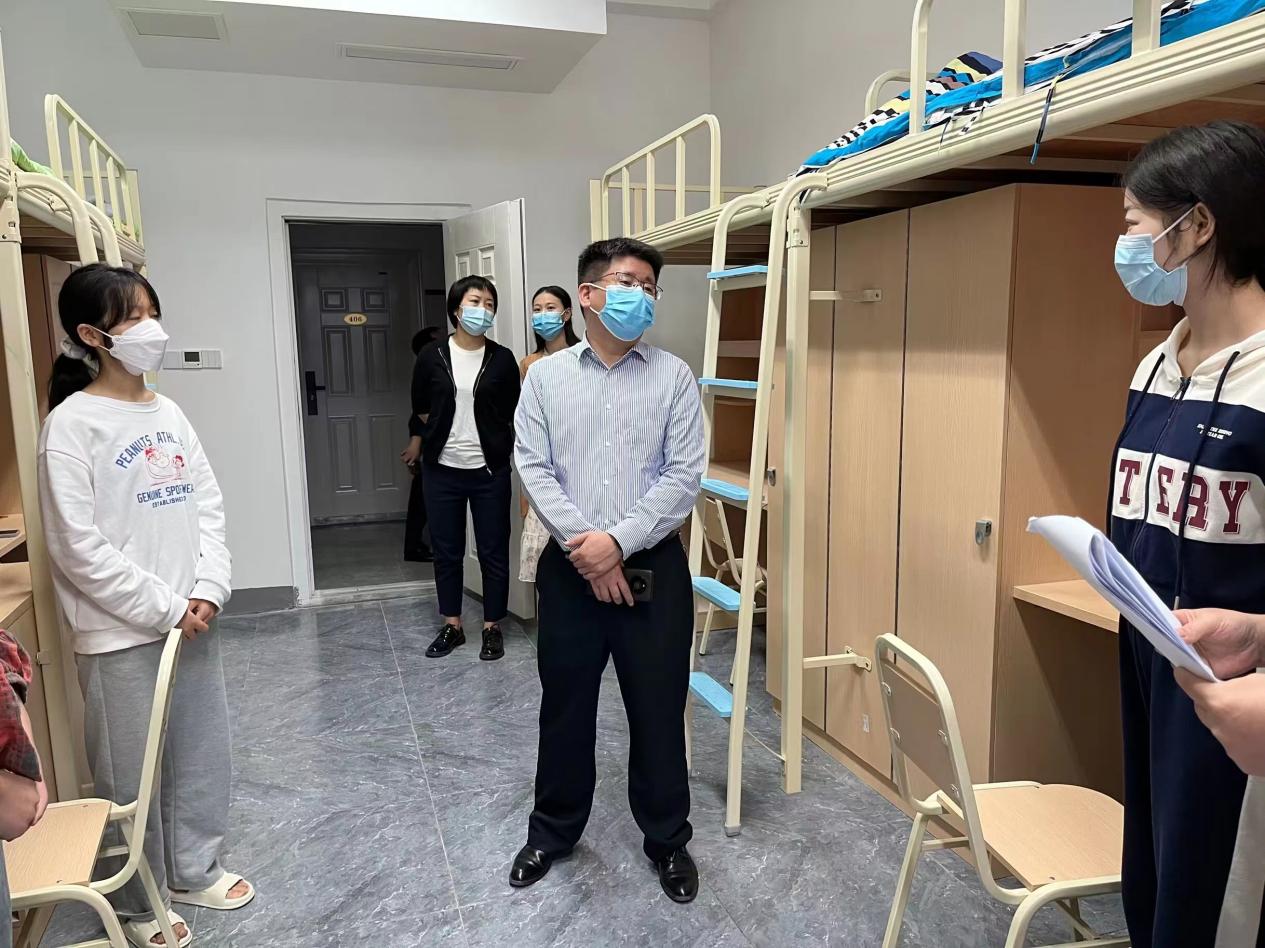 为进一步做好2022级新生入学教育管理工作,深入了解新生的入住情况,2022年9月25日,太阳成集团tyc151cc经理叶怀凡、党总支副书记王文娟、教师教育发展中心副主任刘箭、副经理赵栅凌、学工办副主任文娟及2022级新生带班辅导员一行走访慰问了新生宿舍,与新同学亲切交流,畅谈新学期新生活。
