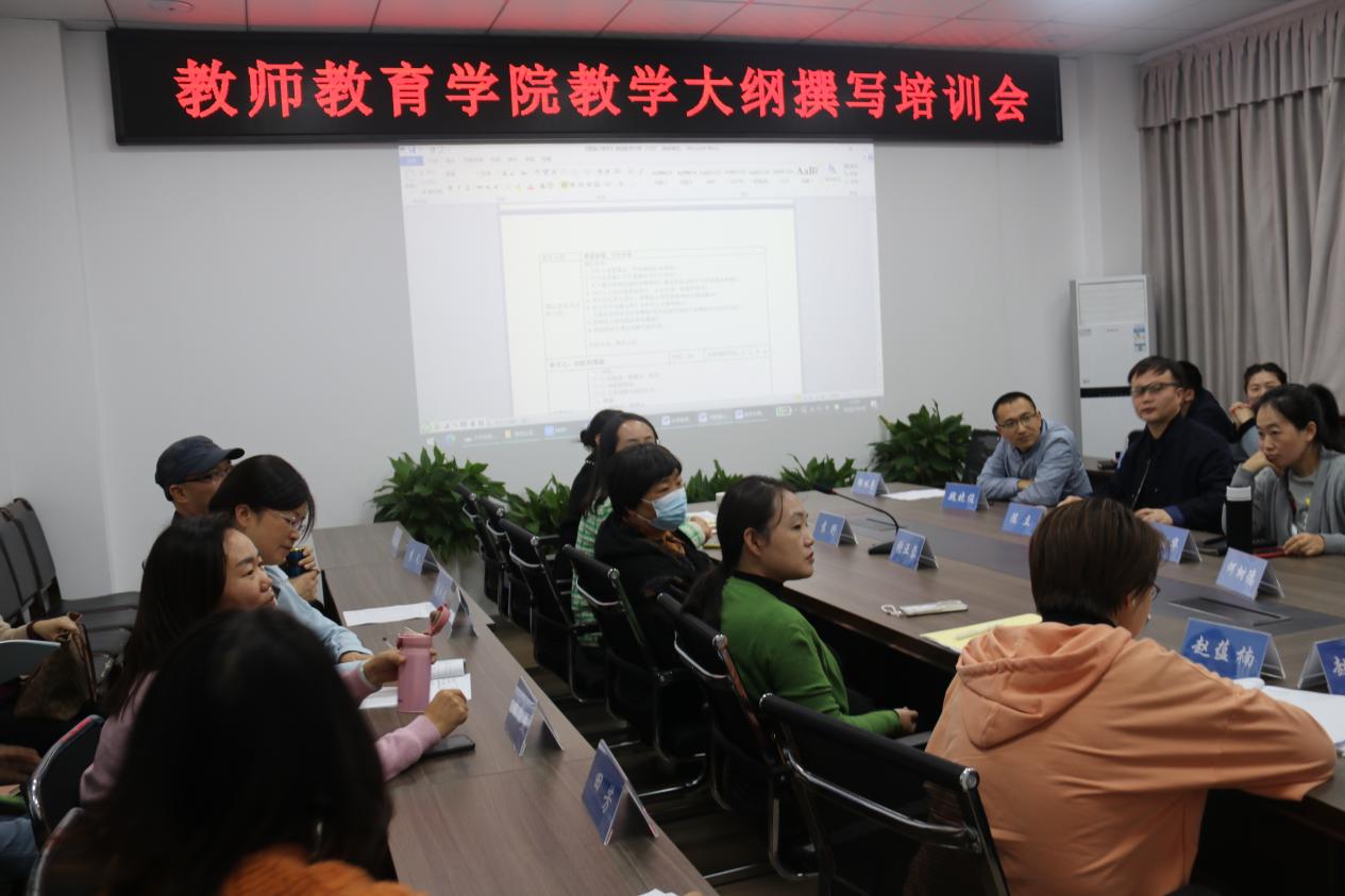 为进一步提高公司专业人才培养质量,全力做好师范专业认证工作。2022年10月26日16:00,公司在博文楼206A会议室召开教学大纲撰写培训会。会议副经理赵栅凌主持,小学教育教研室主任刘勉主讲,公司各位老师参加学习,公司教学督导委员会副主任何树德教授莅临指导。