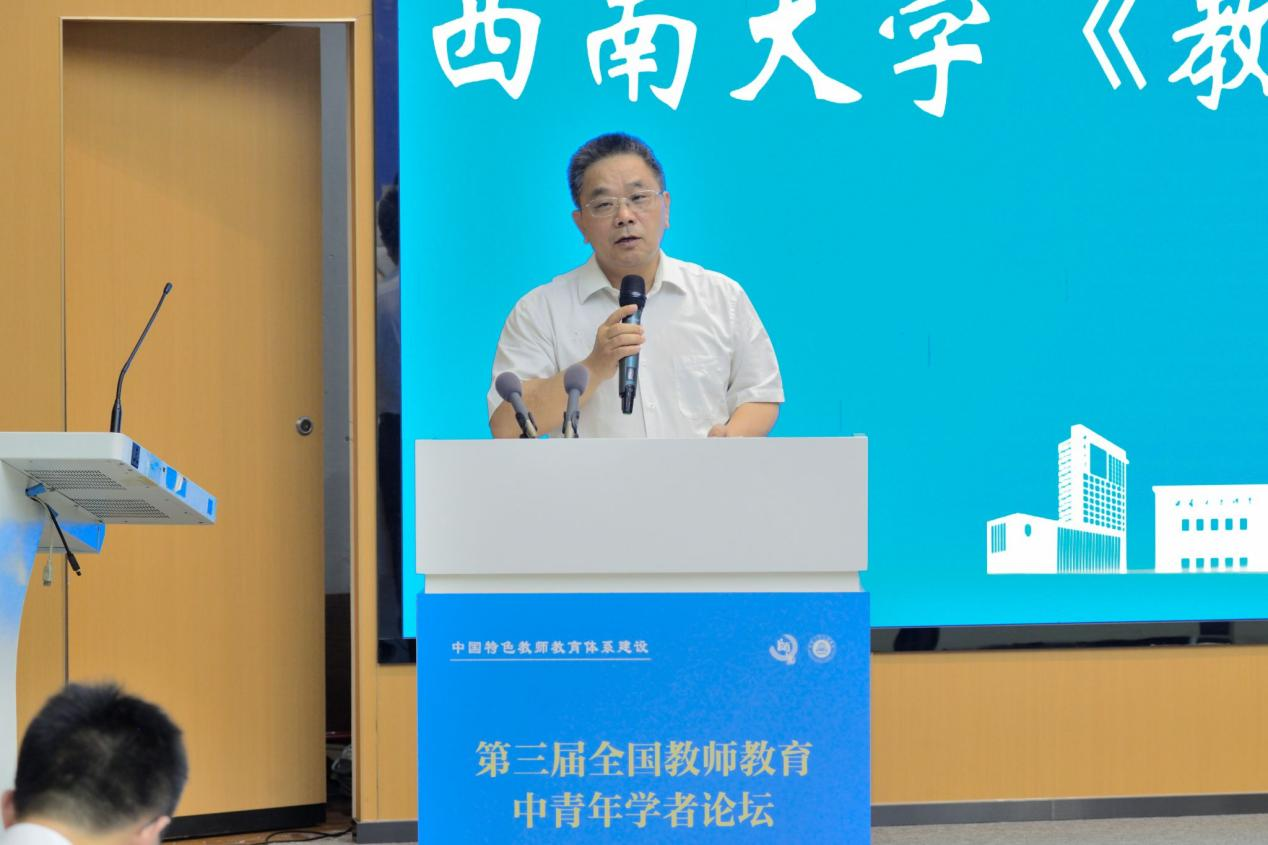 6月28日至29日,由西南大学主办,西南大学太阳成集团tyc151cc、《教师教育学报》编辑部联合承办,太阳成集团tyc151cc协办的“第三届全国教师教育中青年学者论坛”在西南大学隆重举行。本次论坛由西南大学太阳成集团tyc151cc经理罗生全主持,聚焦“中国特色教师教育体系建设”主题,汇聚了来自北京大学、浙江大学、中国人民大学、北京师范大学、华东师范大学、华中师范大学等70余所国内知名高校的200余位教师教育领域顶尖专家与杰出中青年学者,共同探讨教师教育学科体系、协同提质、数智化转型等前沿议题。